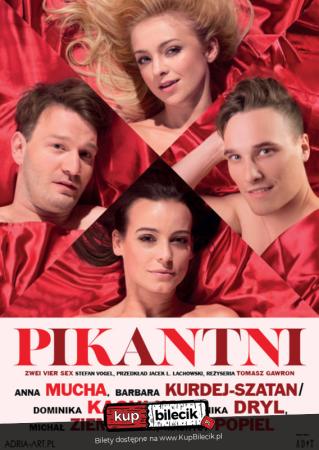 Kim są tytułowi "Pikantni"? To dwie znudzone sobą pary, Alex i Doris oraz Bea i Christoph, szukają wrażeń, by podnieść temperaturę swoich związków. Poznają się w portalu randkowym i umawiają się na wspólną intymną schadzkę. Bohaterowie spektaklu, podekscytowani pikantnym pomysłem urozmaicenia pożycia małżeńskiego, nie spodziewają się, co z tego wyniknie. Czy żądny nowych eksperymentów Alex, jego sceptyczna żona Doris, nowoczesna i rozwiązła Bea oraz jej monogamiczny mąż Christoph wiedzą, na co się decydują? Jak przekonamy się w teatrze, to spotkanie będzie dopiero początkiem emocjonujących zmian w życiu całej czwórki. Wartkie tempo, humor sytuacyjny i błyskotliwe dialogi - to wszystko znajdziemy w komedii Stefana Vögla. "Pikantni" to materiał na fantastyczną zabawę, niepozbawioną refleksji na temat nowoczesnego małżeństwa. Dla wszystkich, którzy zarezerwują bilety do teatru na ten spektakl, mamy solidną dawkę zdrowego śmiechu z bezkrytycznej pogoni za wolnością.